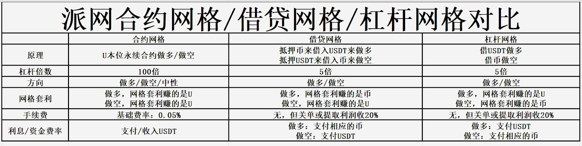 合约网格/借贷网格/杠杆网格对比