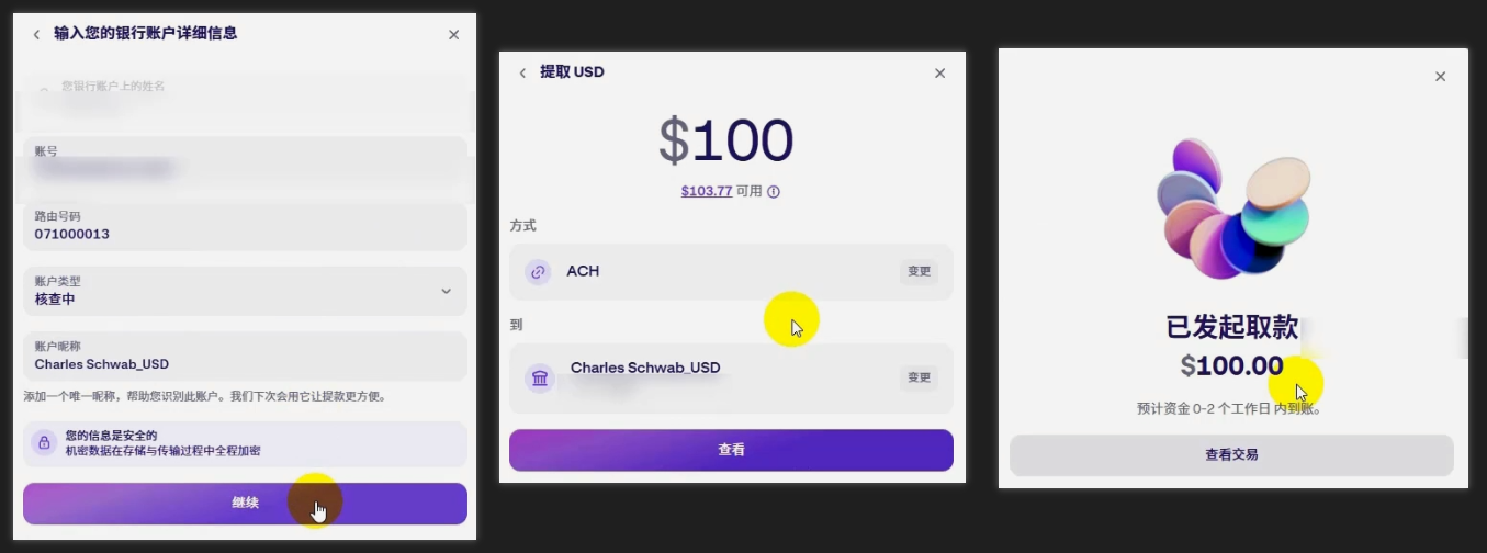 关于 Direct Deposit 直接存款,它是一种电子转账方式,主要是给雇主/政府或者其它的汇款机构直接打款到你自己的个人银行帐户。也就是通过对公帐户转账到个人的银行帐户!也就是 Kraken 可以通过 ACH 的方式来转账到嘉信理财的个人同名帐户。(Direct Deposit 帐户)