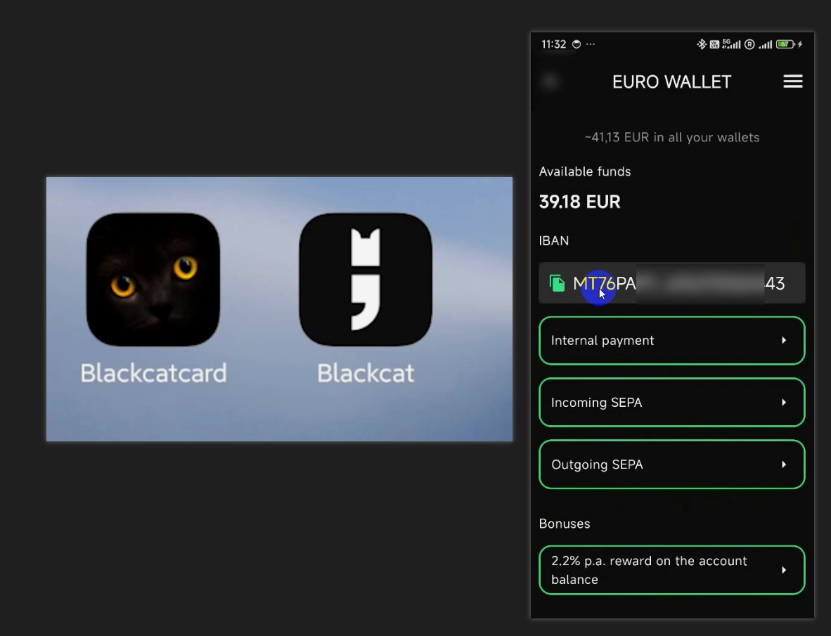 现在黑猫卡新推出了一个 App 叫做 Blackcat,我之前在 Blackcatcard 的 App 无法登录,我的手机收不到验证码,然后我用黑猫卡的登录信息在 Blackcat 这个 App 登录完全是没有问题的。另外还有一点需要说一下的就是,之前的 Blackcatcard 提供的保加利亚的 IBAN 在 Blackcat 这个 App 里面是看不到的。他提供的 IBAN 还是之前的 IBAN,这个 IBAN 目前还是可以正常使用的。