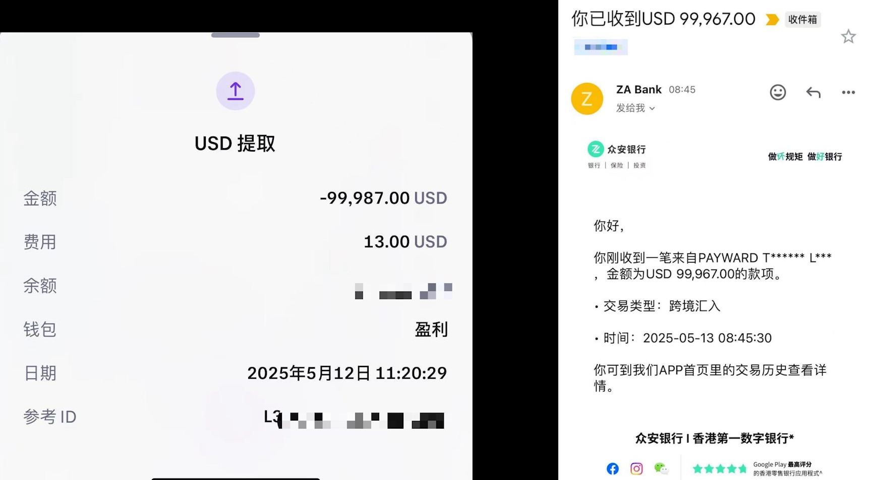 还有个小伙伴他分享用 Kraken 海妖交易所转账到众安银行,他是转了 10 万美金,损耗大约是 33 美金,他的众安银行也是顺利到账的!