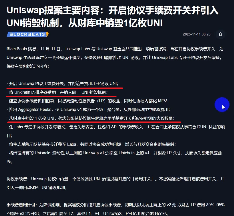 有提案要开启协议手续费回购 Uni 代币,并且 Unichain 的收入也会进行销毁 Uni,还有就是还会计划销毁金库里面的一亿枚的 Uni 代币(占总供应量 16%),如果这个提案通过,那么 Uni 代币可能未来会稳步上涨。